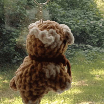 a cozy crochet brown and white cow plushie, crafted with soft, textured yarn in shades of brown and white. the cow features a rounded body with distinct patches of brown and white, making it look realistic and adorable.